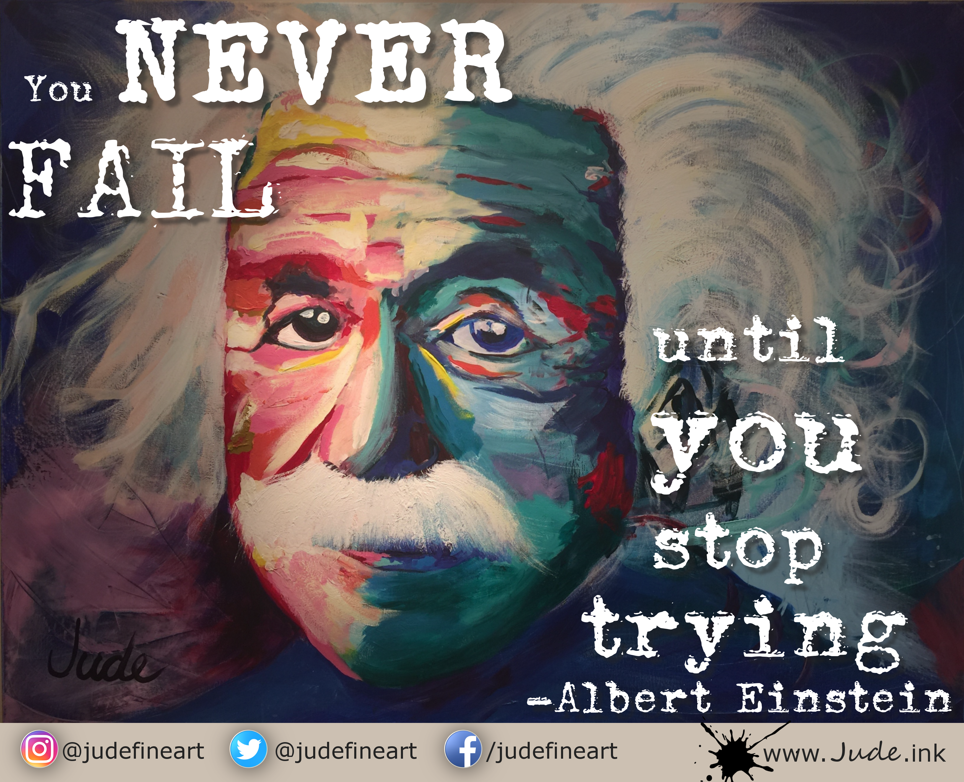 Description: This piece is a portrait of Albert Einstein done in multiple varying colors. It is the first piece done in color by the artist.